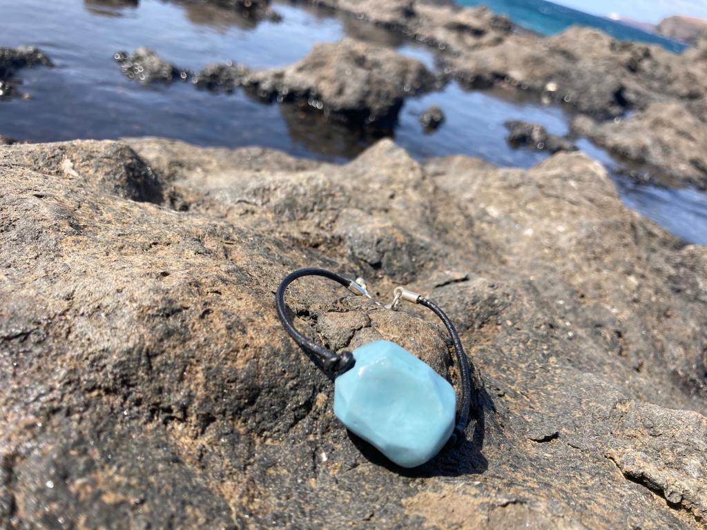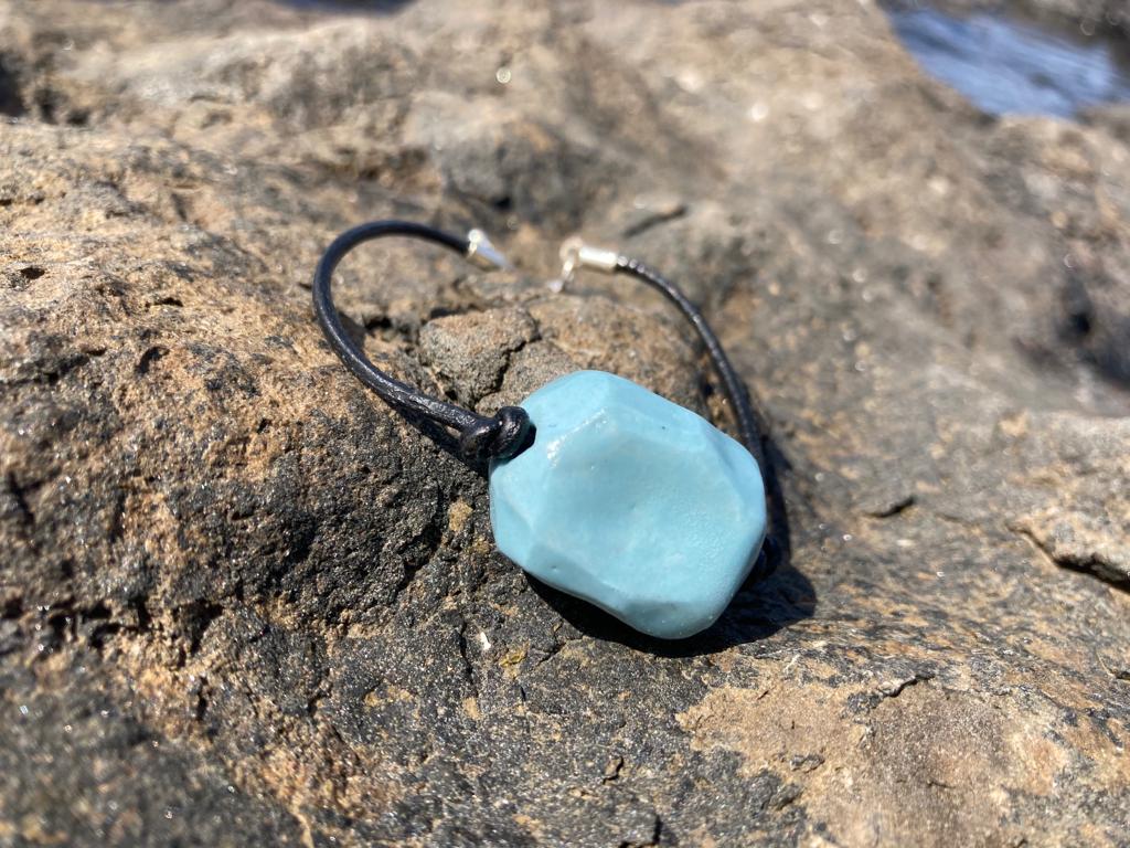 Pulsera de Porcelana teñida, con cordon de polipiel y cierre de plata de 1ª ley.