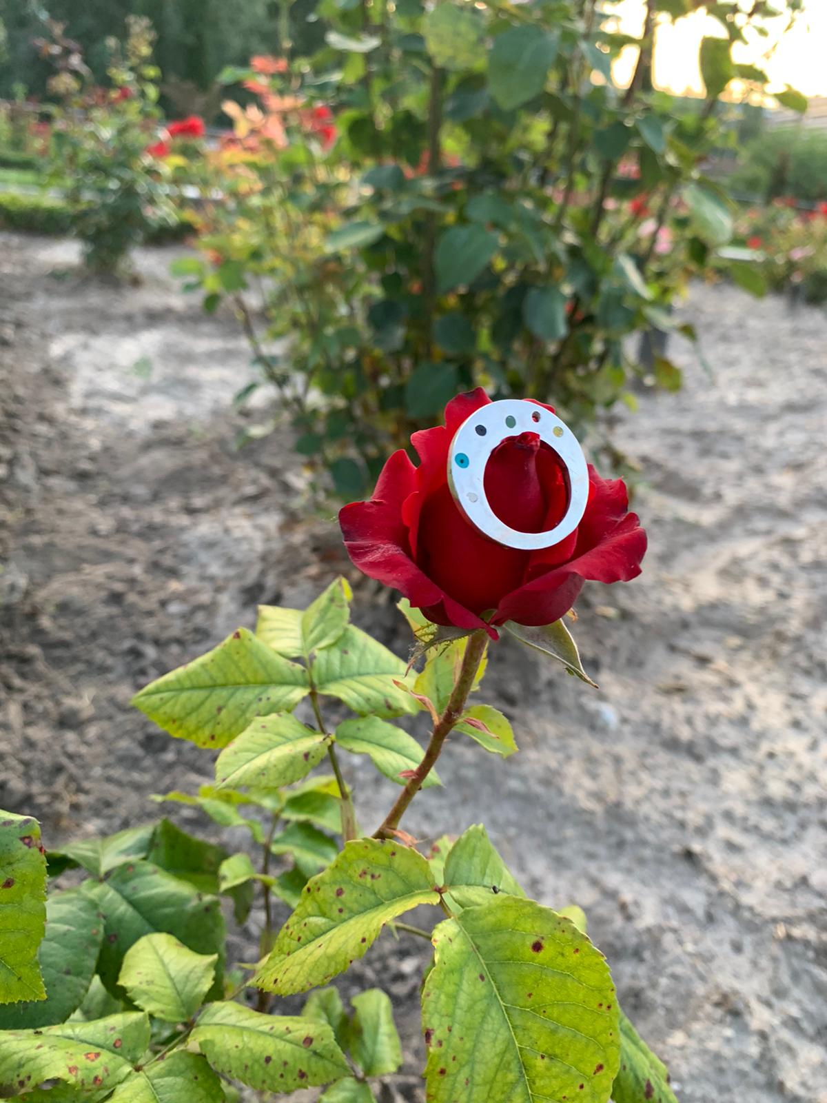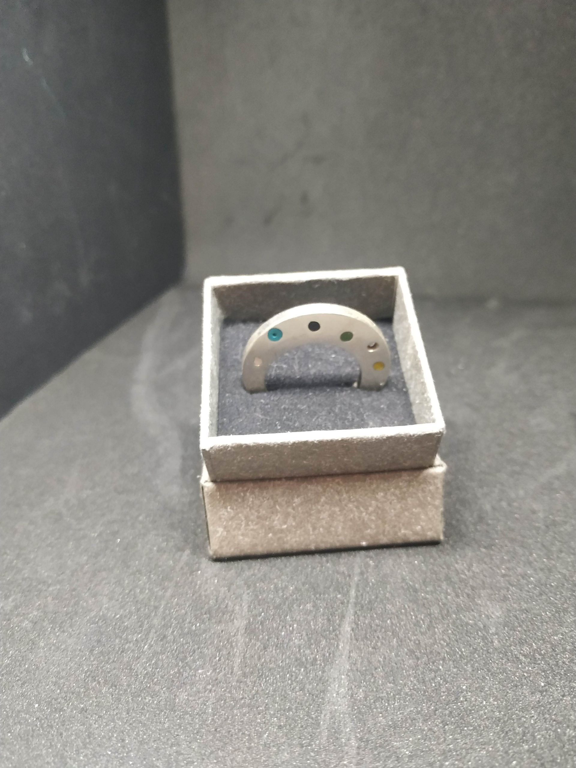 Anillo de plata con perforaciones en su interior y relleno de esmalte de colores