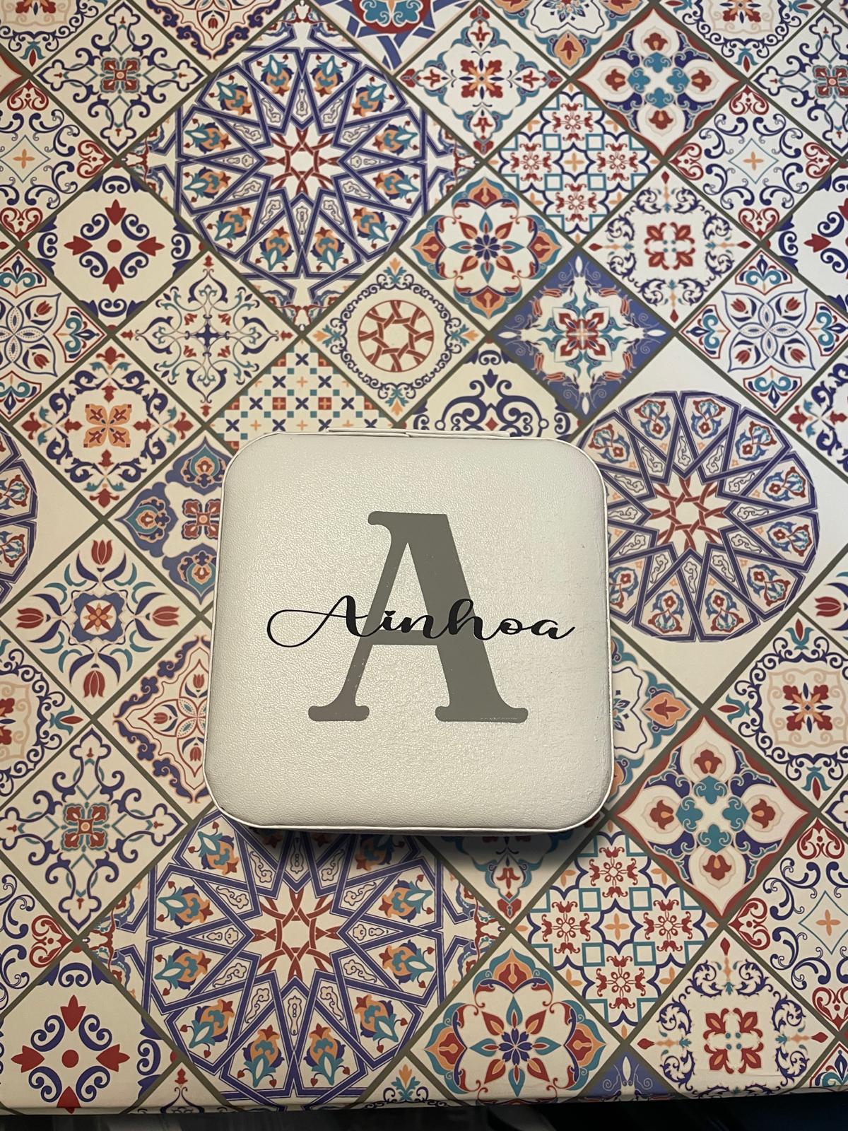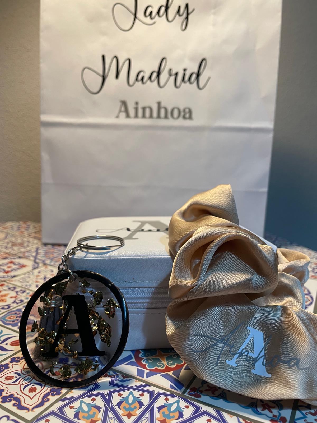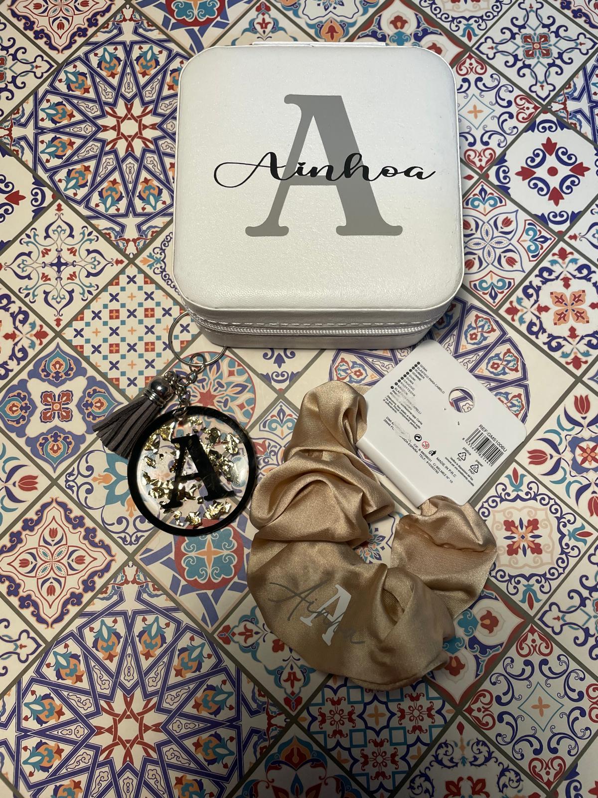 Joyerito de viaje personalizado más coletero con la inicial que tu quieras mas llavero con pan de oro (elige los colores que mas te gusten y haz tu cajita a juego)