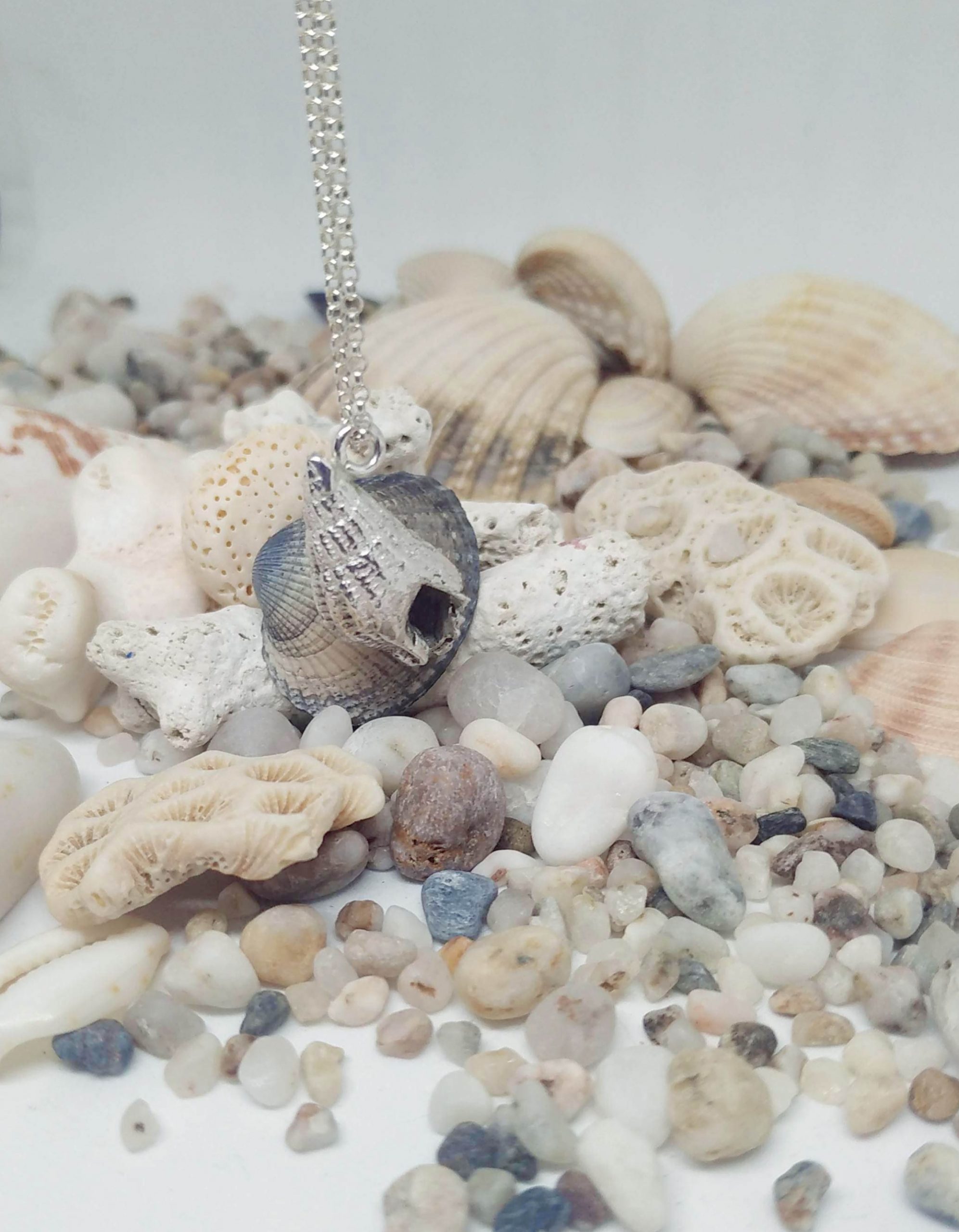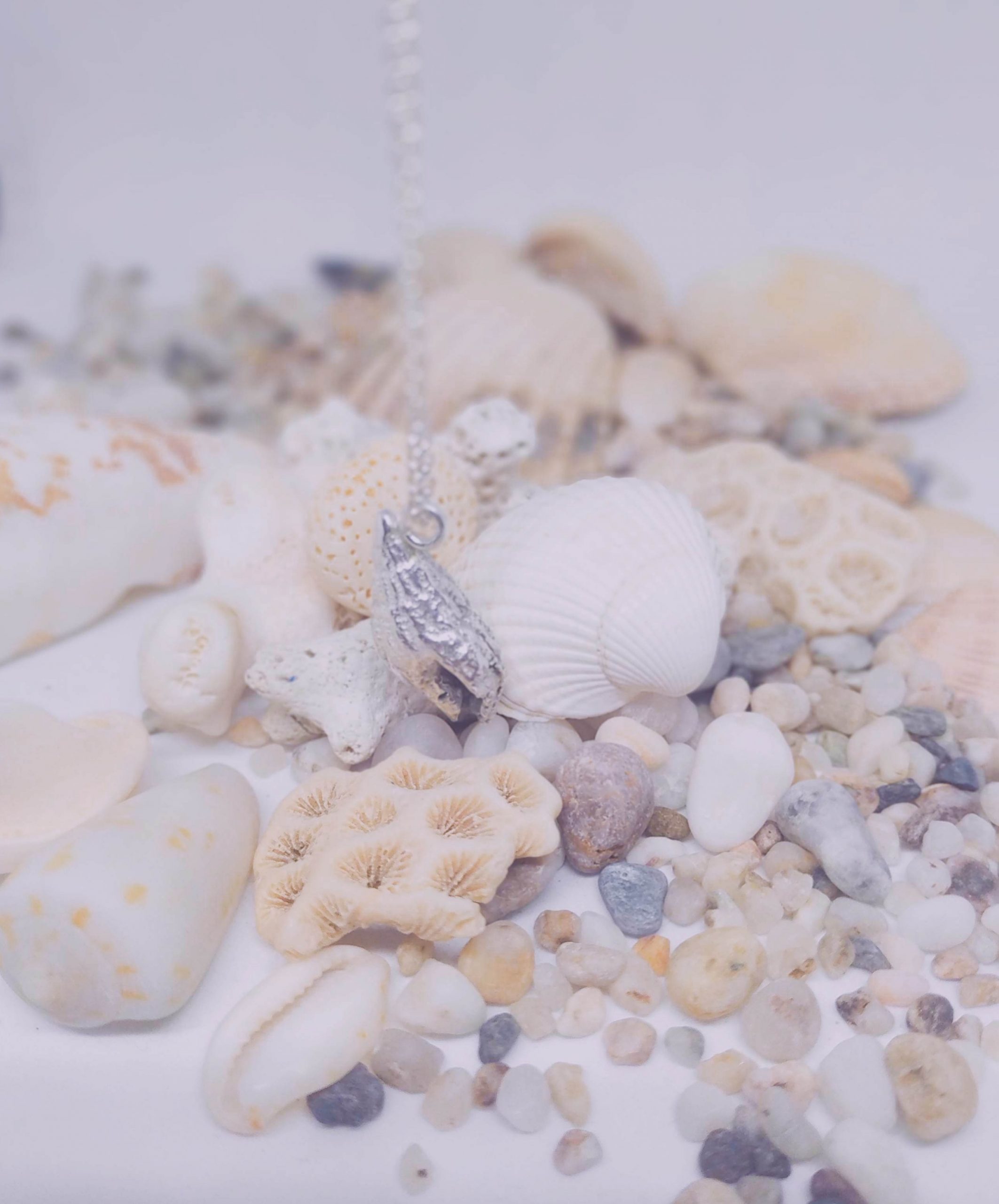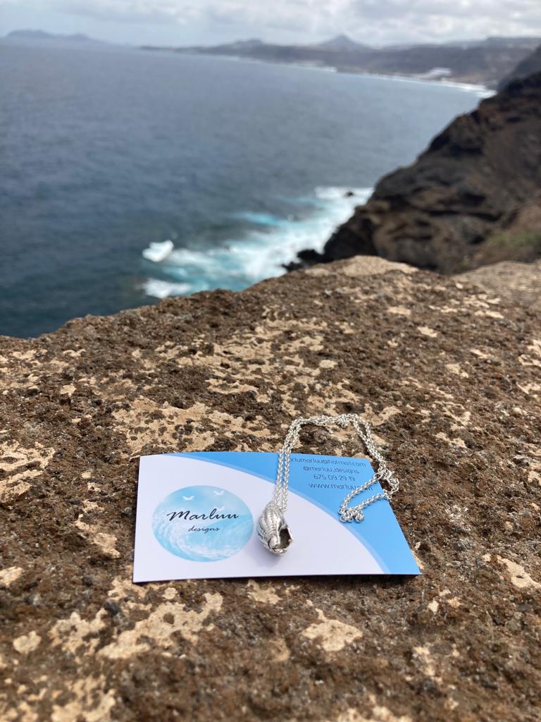 Colgante de Plata de 1ºley en brillo inspirado en las caracolas del mar, reproducido de una misma y creada por el proceso de microfusión.
