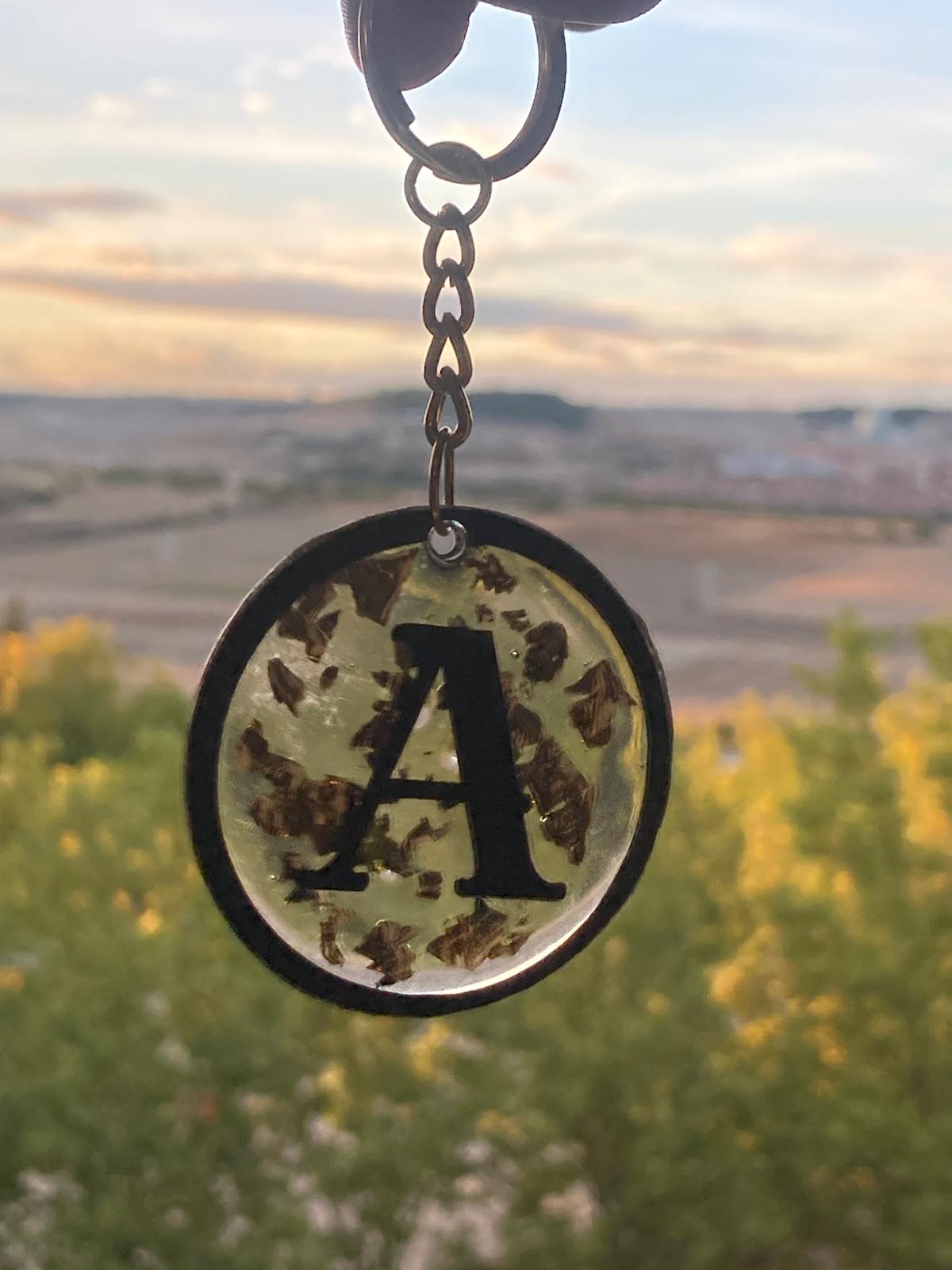Llavero metacrilato con borla a elegir color, con pan de oro, plata o bronce a elegir color con capa protectora de resina, elige la inicial que quieras!