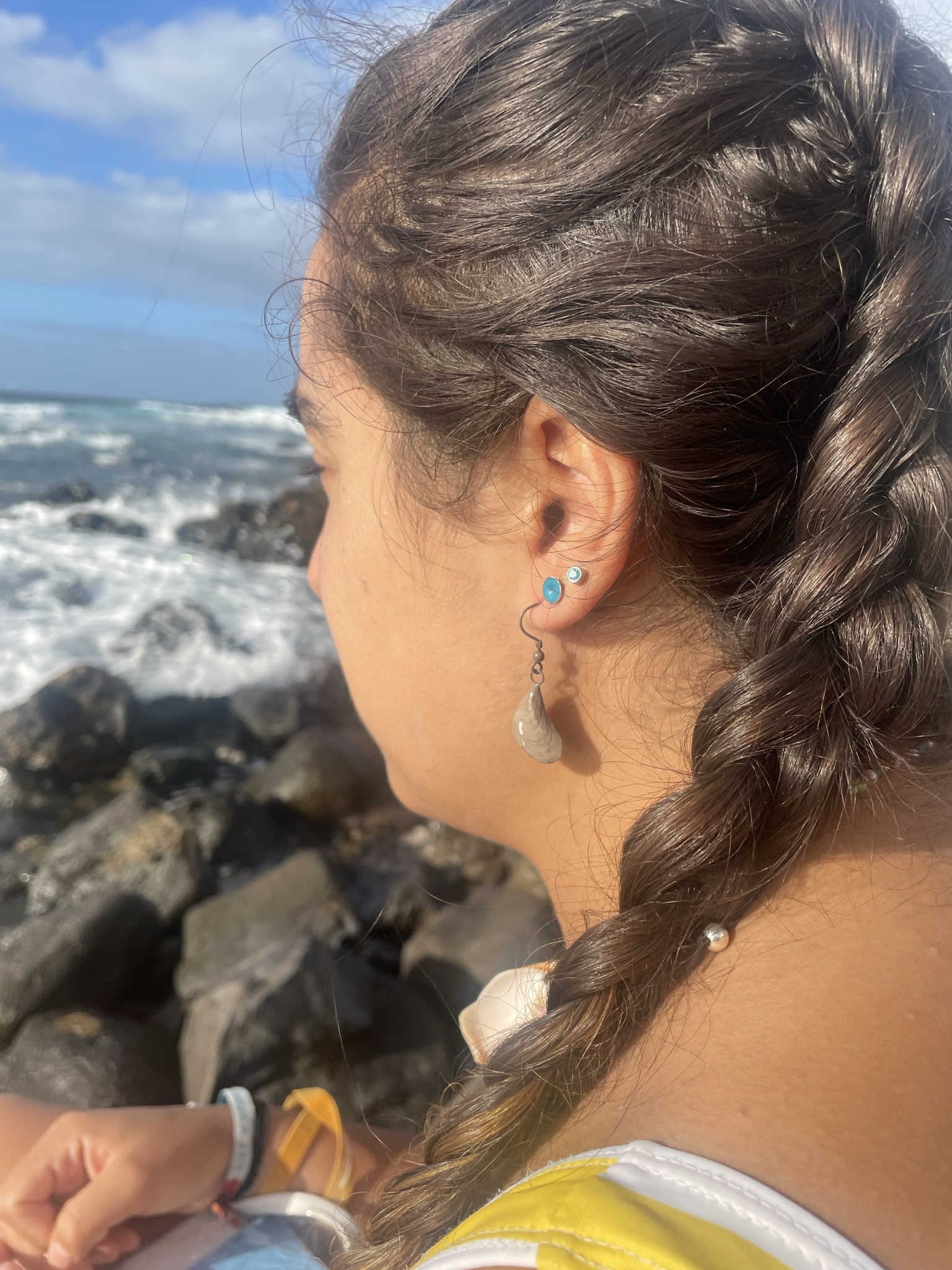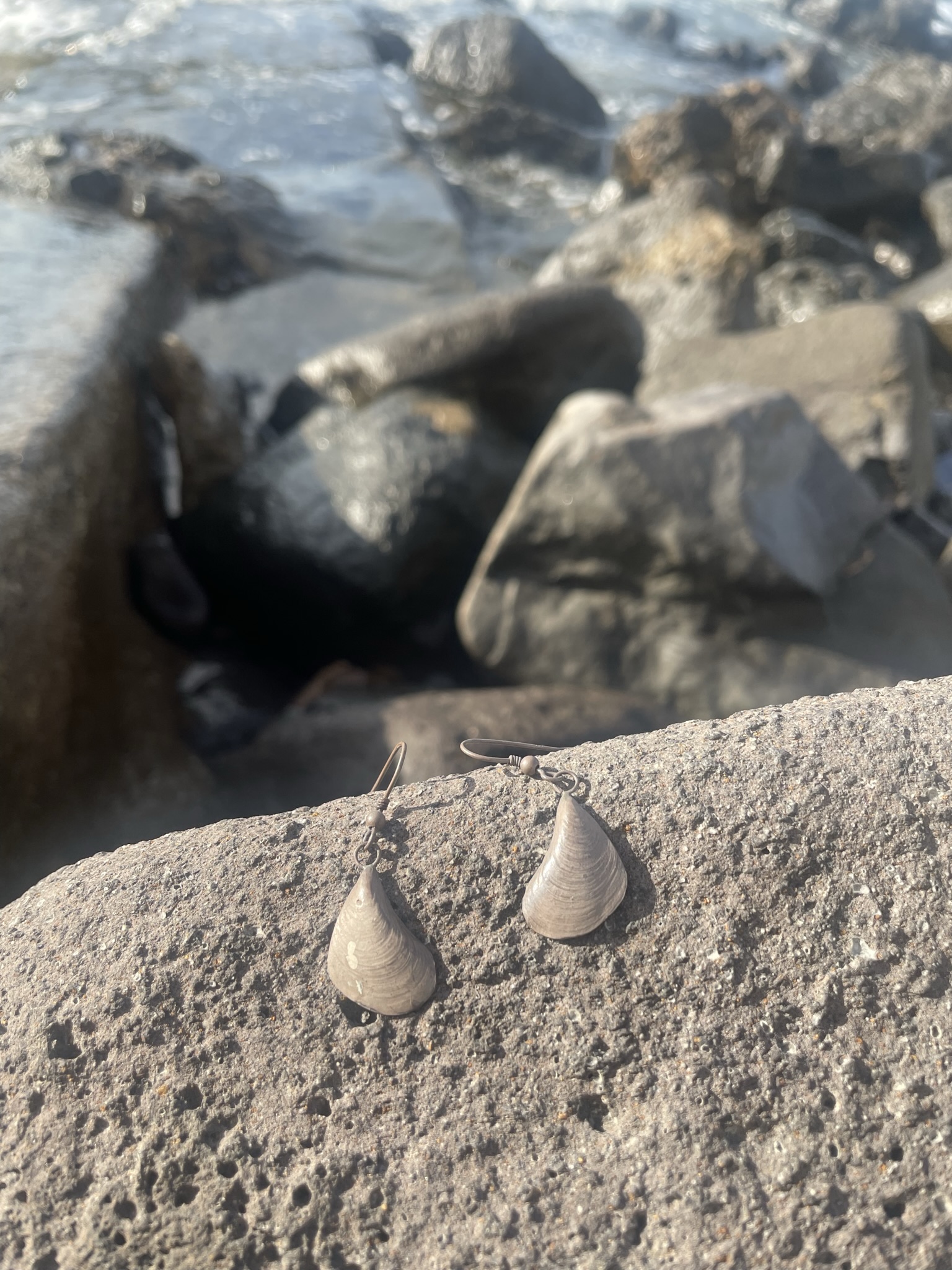 Pendientes de plata creados a partir de un mejillón natural encontrado entre las rocas.