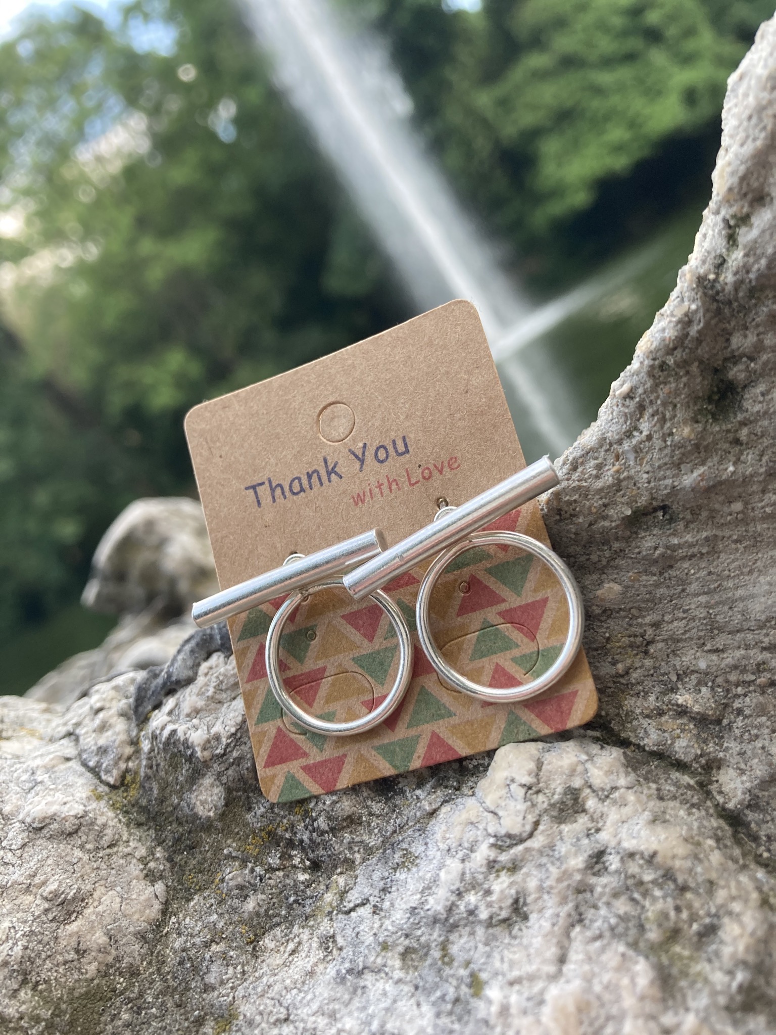 Pendientes multi posición de plata, puedes ponerte el círculo tanto por delante como por detrás de la oreja, junto o separado.
