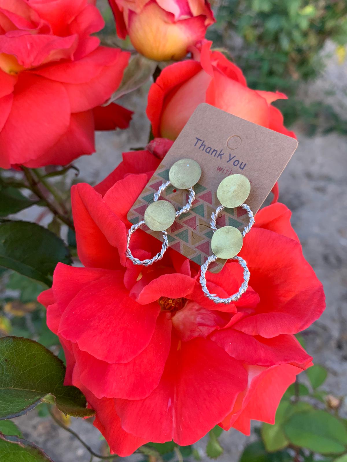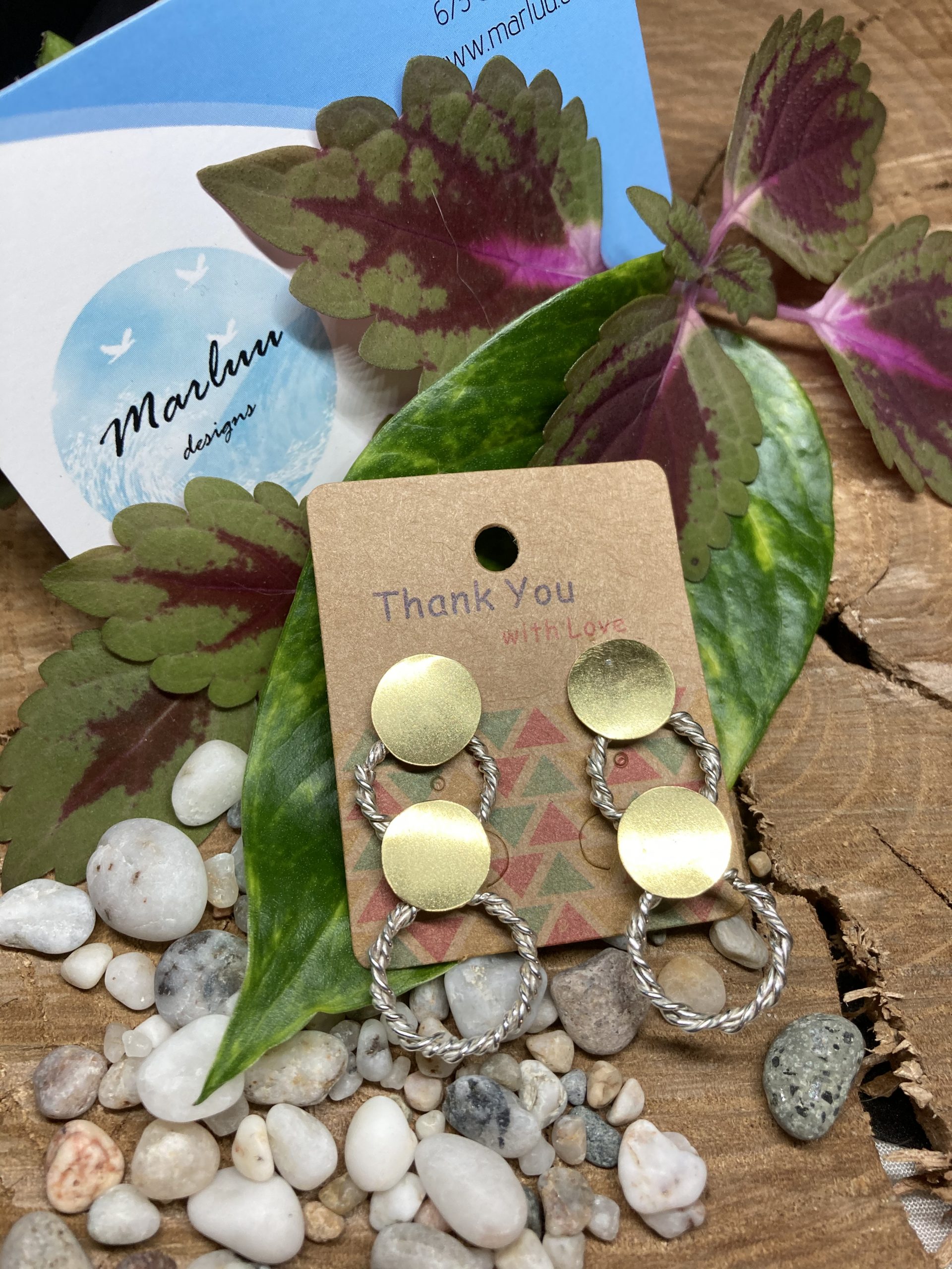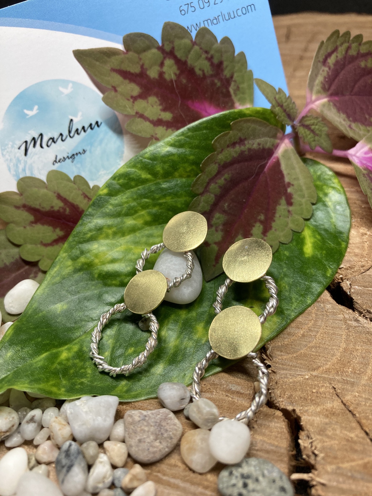 Pendientes largos de hilo de plata trenzada y círculo de latón